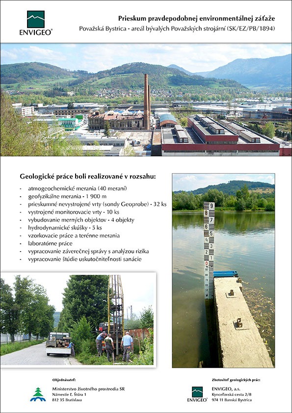 V r. 2015 realizovala spoločnosť ENVIGEO, a.s. v spolupráci s ďalšími riešiteľskými organizáciami pre Ministerstvo životného prostredia Slovenskej republiky prieskum vybraných environmentálnych záťaží (EZ), pravdepodobných environmentálnych záťaži (PEZ) a sanáciu environmentálnych záťaží.